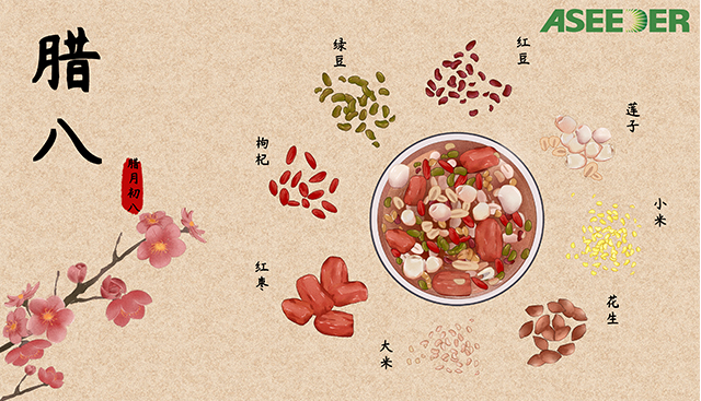 臘八節在我國(guó)很(hěn)多(duō)地方有(yǒu)喝(hē)臘八粥的習俗,盡管臘八粥的品種、熬制方法不一樣,但主要配料都是以臘八裏的“八”字,湊夠米、豆、幹果、花(huā)生、核桃仁、蓮子、桂圓、肉丁8樣食用(yòng)材料,甚至更多(duō),各地風味獨特。